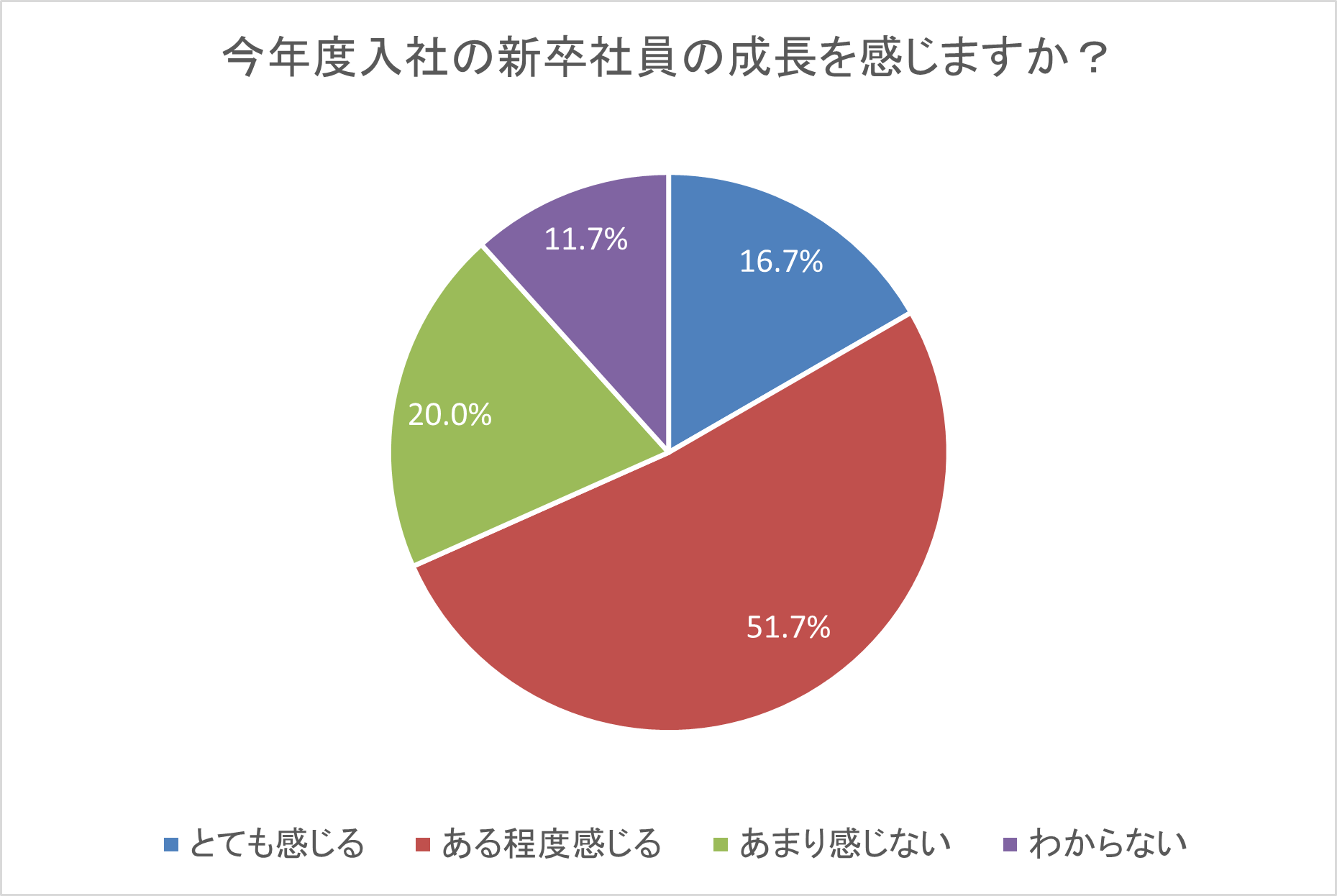 この結果からは、新卒の成長に対するポジティブな手応えはあるものの、全体的には“発展途上”という見方が主流であるといえます。