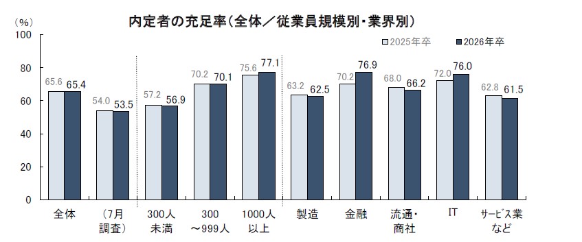 充足率の平均は65.4%で、前年同期調査と同水準。未充足企業の大半が質優先の姿勢