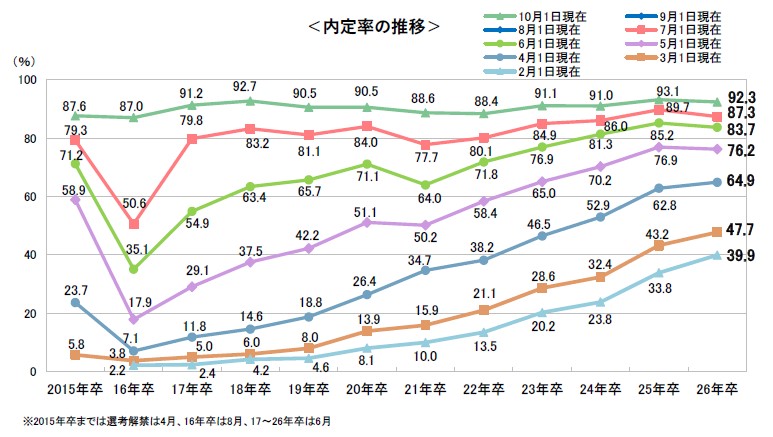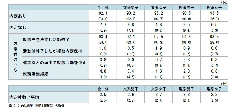○内定率は92.3%。前回調査(7月調査、87.3%)から3カ月間の伸びは5ポイント