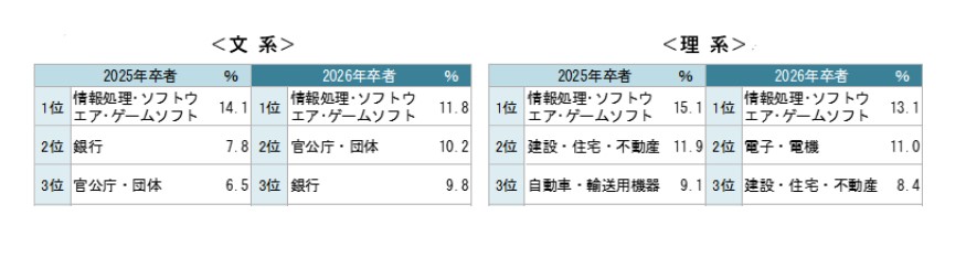 ○就職決定業界は前年に引き続き、文理とも「情報処理・ソフトウエア」が最多