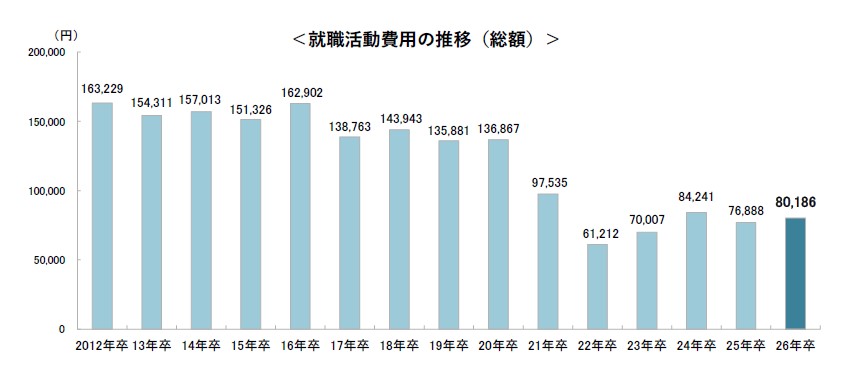 ○平均80,186円で、前年より3千円余り増加。但し「交通費」は減少傾向が続く