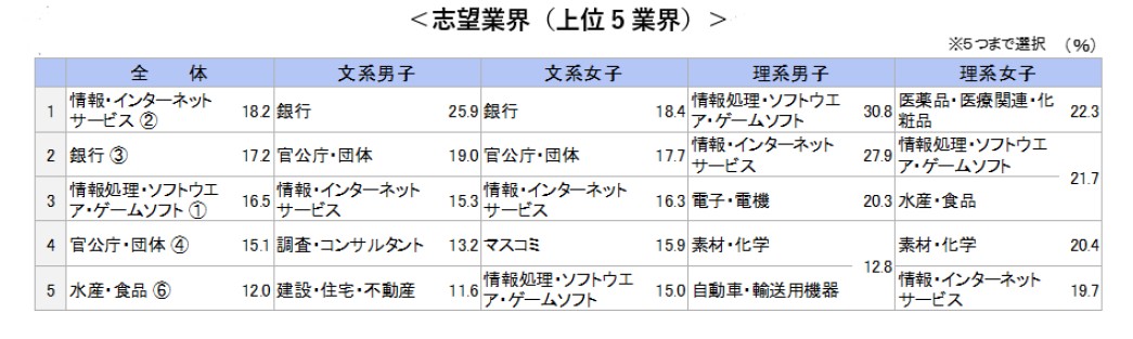 ○1位「インターネットサービス」、2位「銀行」、3位「情報処理・ソフトウエア」