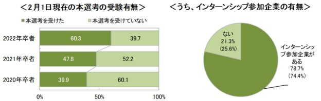 ○「本選考を受けた」が60.3%。前年より12.5ポイント増加