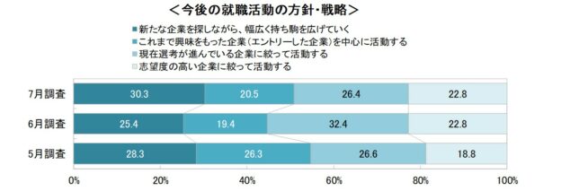 「新たな企業を探しながら、幅広く企業を広げる」が6月より大きく増加